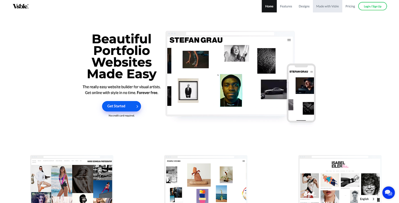 "Beautiful Portfolio Websites Made Easy: The really easy website builder for visual artists. Get online with style in no time. Forever free" .