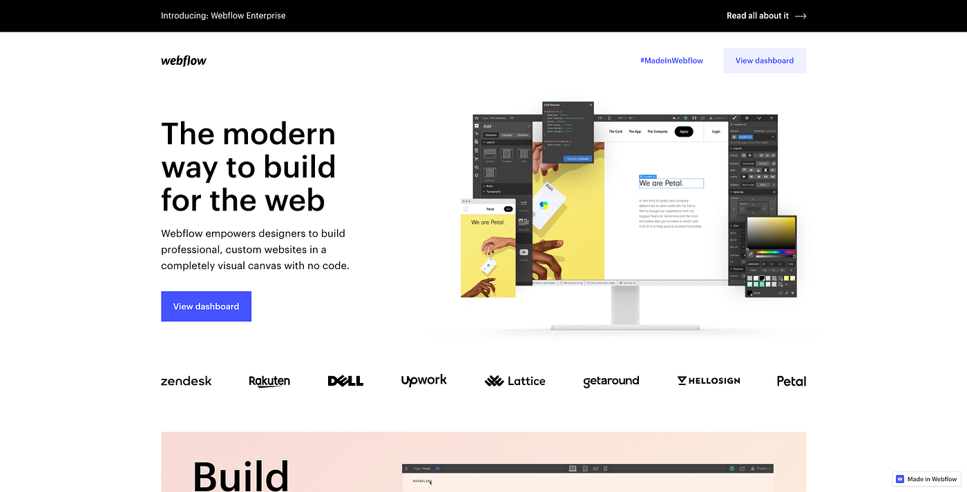 One of the most famous NoCode editor. This is a big one, not only a portfolio builder but also a tool for CMS, eCommerce, etc. There are great companies using webflow. Has nice templates, showcase and you can even become a webflow expert. They have even a webflow university with tutorials, lessons, courses, etc. Also what they call Webflow enterprise: "Loved by designers. Trusted by enterprises. Bring Webflow in-house at your company with advanced security, custom traffic scaling, guaranteed uptime, and much more."