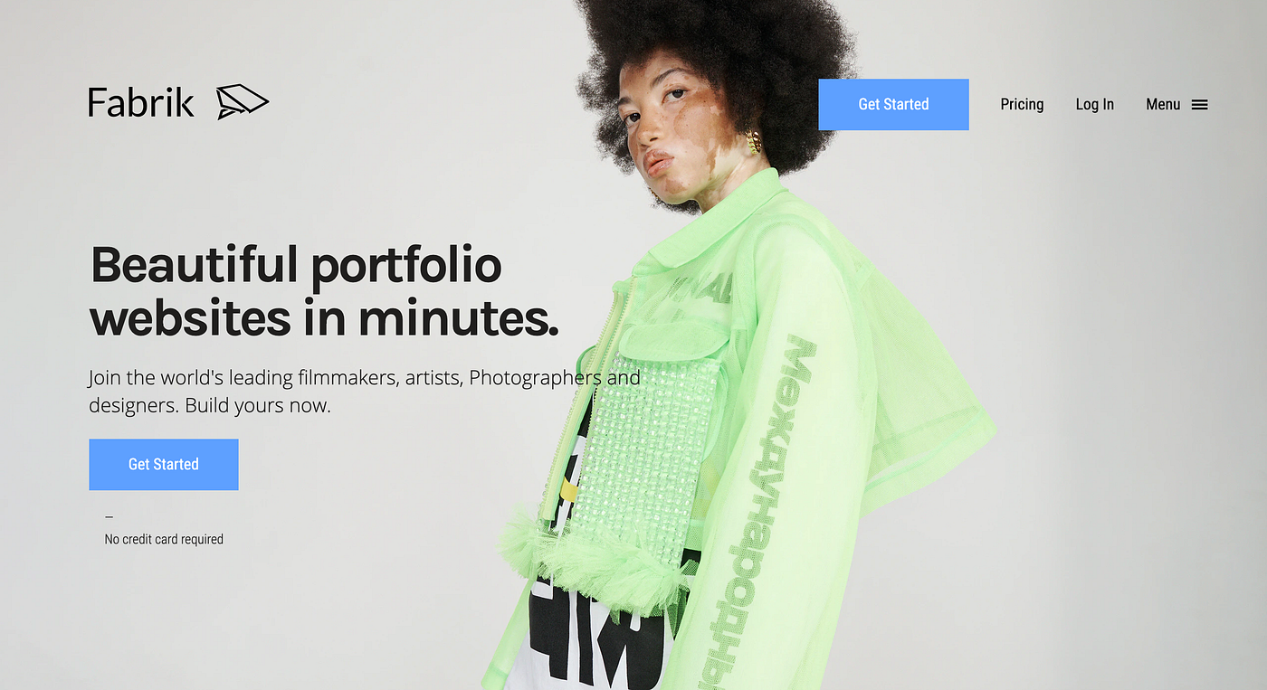 "Join the world's leading filmmakers, artists, Photographers and designers. Build yours now. Presenting your work is the final step in your production workflow. We've worked closely with thousands of creatives to make sure Fabrik shows off your work at its best. See how we do it: What type of creative are you?".