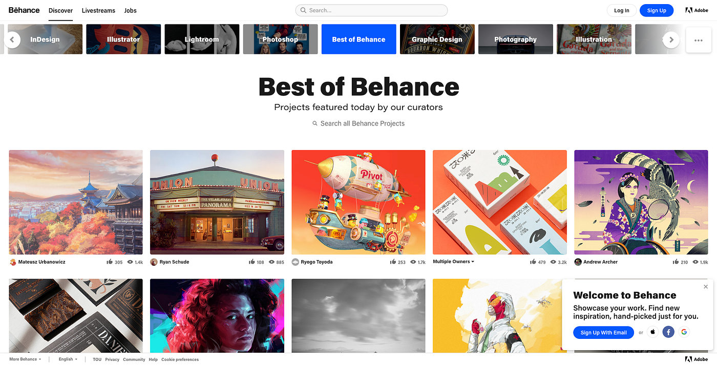 They have several sections as featured portfolios (hall of fame), livestreams, a job portal. I have seen many recruiters looking for freelancers at Behance. They also have an App, so it is quite easy, even if you are in UX, you can easily make a case study or change anything later quite fast. You can even make moodboards.